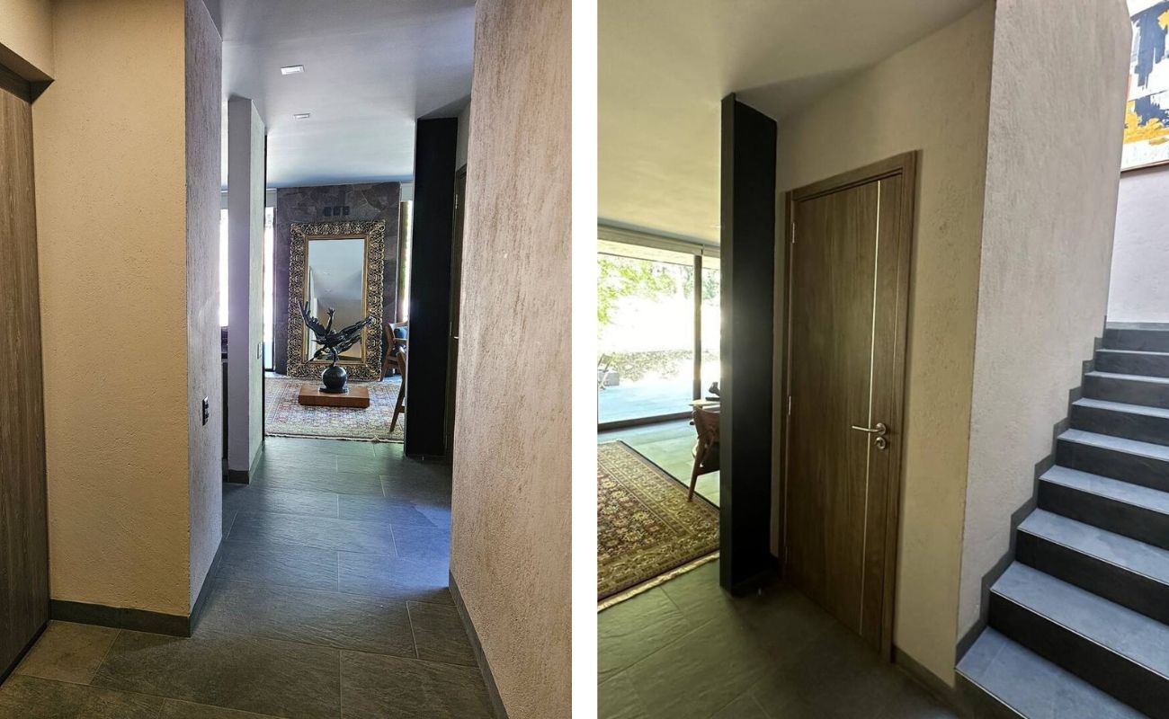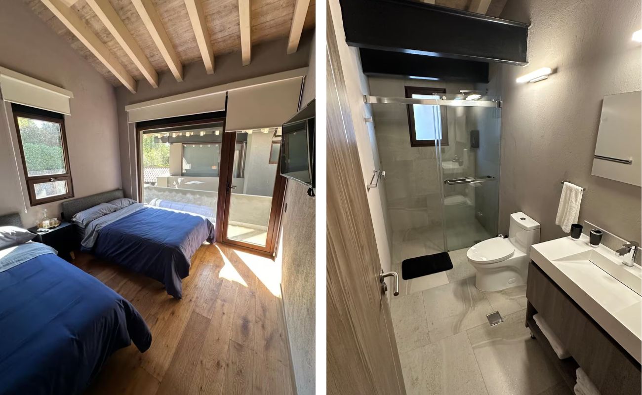 En la planta alta: La residencia dispone de cuatro habitaciones tipo suite, todas ellas con baño completo y clóset. Dos de estas habitaciones están equipadas con cama king size, mientras que las otras dos cuentan con dos camas matrimoniales cada una, proporcionando comodidad para familias numerosas o visitantes. La recámara principal ofrece, además, una terraza tipo balcón con vista privilegiada al bosque, aportando un espacio íntimo de contemplación y descanso.